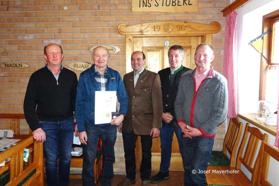 Josef Mayerhofer, Obmann des NÖ Alm- und Weidewirtschaftsvereines, verlieh ihm dafür die Medaille in Gold für besondere Verdienste um die Alm- und Weidewirtschaft in Niederösterreich. „Wir brauchen engagierte und gewissenhafte Funktionäre zum Wohle der Alm- und Weidewirtschaft“, betonte Josef Mayerhofer und bedankte sich bei Engelbert Raab sowie bei allen anwesenden Funktionären für die vorbildliche Arbeit.